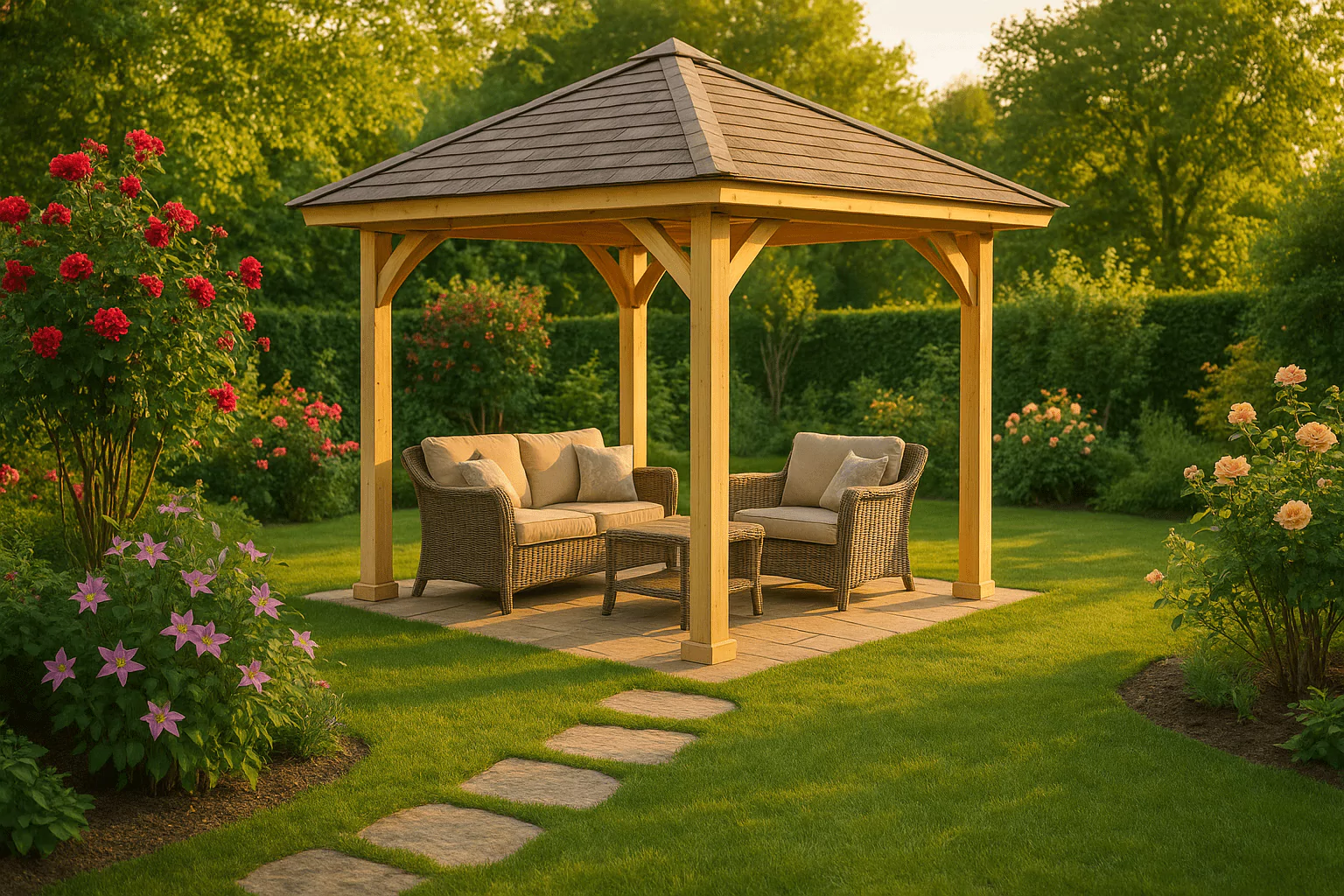 Durch diese individuellen Touches wird der Pavillon zu einem persönlichen Rückzugsort, der den eigenen Charakter widerspiegelt und dem Garten eine besondere Note verleiht.